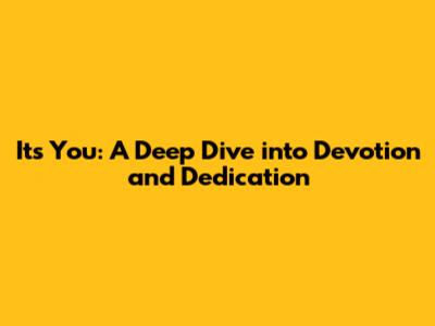 It's You: A Deep Dive Into Devotion And Dedication
