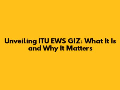 Unveiling ITU EWS GIZ: What It Is and Why It Matters