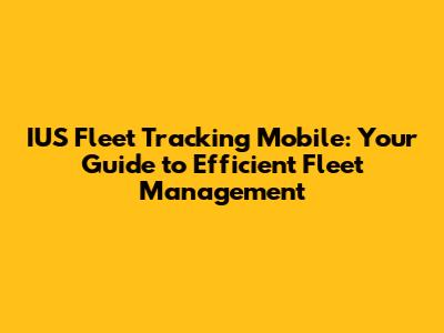 IUS Fleet Tracking Mobile: Your Guide To Efficient Fleet Management