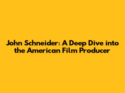 John Schneider: A Deep Dive Into The American Film Producer