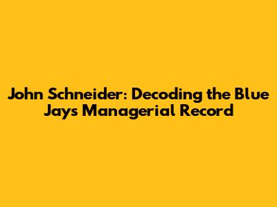 John Schneider: Decoding The Blue Jays' Managerial Record