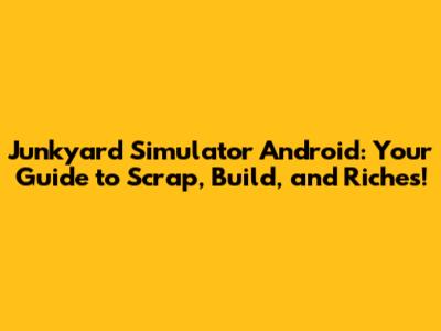 Junkyard Simulator Android: Scrap, Build, And Thrive!
