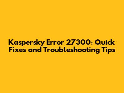 Kaspersky Error 27300: Quick Fixes And Troubleshooting Tips