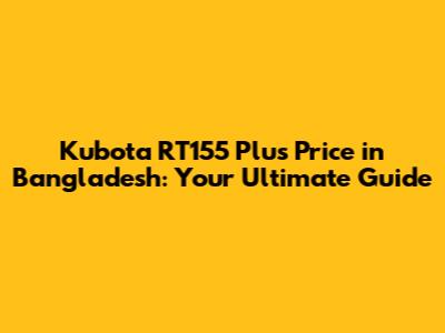 Kubota RT155 Plus Price in Bangladesh: What to Expect