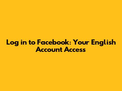 Log In To Facebook: Your English Account Access