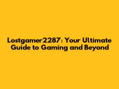 Lostgamer2287: A Comprehensive Guide To Gaming And More