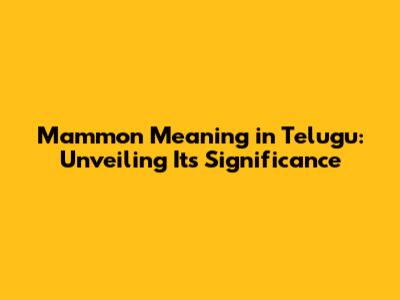 Mammon Meaning In Telugu: Unveiling Its Significance