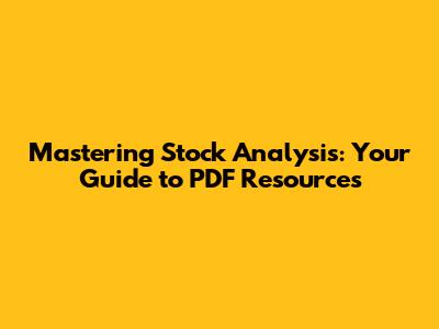 Mastering Stock Analysis: Your Guide To PDF Resources
