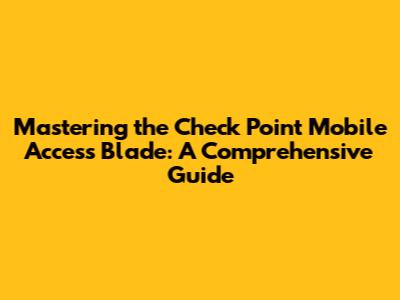 Hey guys! Let's dive into something super important for anyone dealing with network security: the Check Point Mobile Access Blade. This is your go-to tool for securing remote access to your company's network. In this guide, we'll break down what the Mobile Access Blade is, why it's crucial, and how to get the most out of it. We'll cover everything from the basics to some of the more advanced configurations. So, whether you're a seasoned IT pro or just starting out, this should give you a solid understanding. This is because Mobile Access Blade is not just another security feature; it is a critical component for enabling secure remote access, ensuring business continuity, and protecting sensitive data from unauthorized access. The Mobile Access Blade enhances organizational productivity by enabling employees to securely access company resources from anywhere, at any time, via their mobile devices. The Mobile Access Blade ensures security through multi-factor authentication, device posture checks, and secure tunnel establishment, which are important parts of the security architecture. We are going to explore all aspects of the blade to make sure you get the most out of it. Let’s get started.