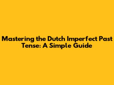 Mastering The Dutch Imperfect Past Tense: A Simple Guide