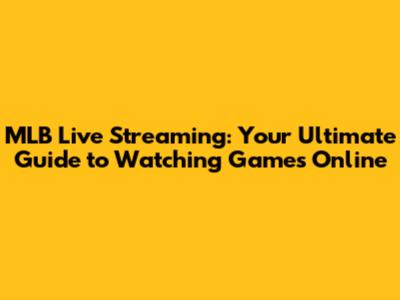 MLB Live Streaming: Your Ultimate Guide To Watching Games Online