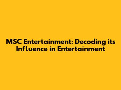 MSC Entertainment: Decoding Its Influence In Entertainment