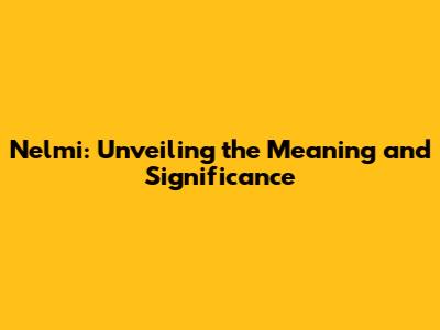Nelmi: Unveiling The Meaning And Significance