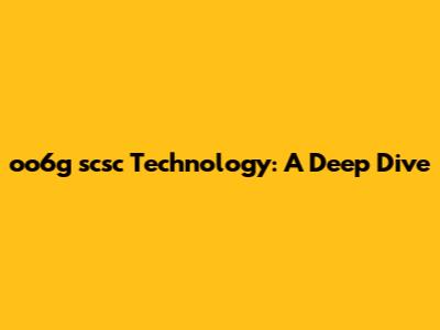 Oo6g Scsc Technology: A Deep Dive