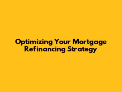 Optimizing Your Mortgage Refinancing Strategy