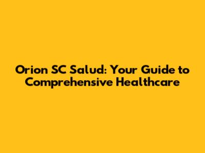 Orion SC Salud: Your Guide To Comprehensive Healthcare