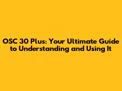 OSC 30 Plus: Your Ultimate Guide To Understanding And Using It