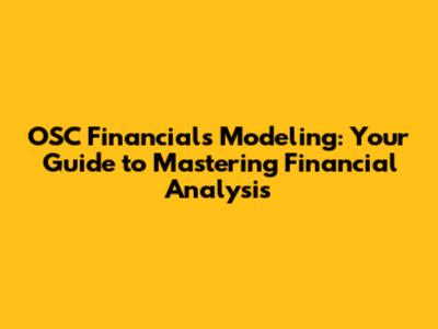 What is OSC Financials Modeling and Why is it Important?