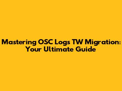 Hey everyone! Today, we're diving deep into something super important for anyone dealing with system monitoring and log management: OSC logs TW migration. If you're new to this, or even if you've done it before but want to ensure you're doing it the best way possible, you've come to the right place. We're going to break down exactly what this migration entails, why it's crucial, and most importantly, how you can tackle it with confidence. Think of this as your go-to manual, packed with tips and tricks to make the whole process smooth sailing. So, grab a coffee, get comfy, and let's get started on understanding and executing your OSC logs TW migration like a pro!