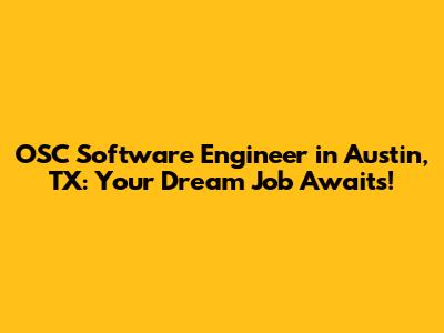 OSC Software Engineer Jobs In Austin, TX: Your Guide