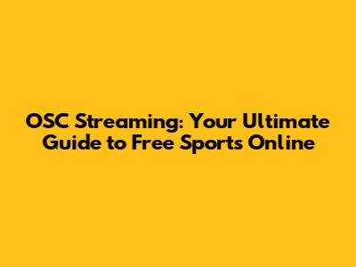 OSC Streaming: Your Guide To Free Sports Online