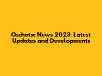 Oschotsc News 2023: Latest Updates And Developments