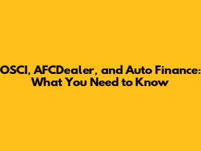 OSCI, AFCDealer, And Auto Finance: What You Need To Know