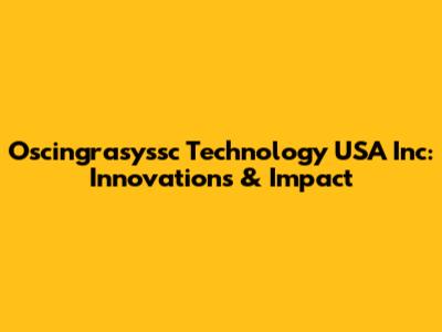 Oscingrasyssc Technology USA Inc: Innovations & Impact