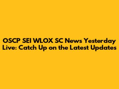OSCP SEI WLOX SC News: Catch Up On Yesterday's Updates!