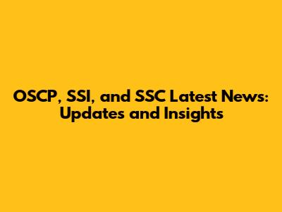 OSCP, SSI, And SSC Latest News: Updates And Insights