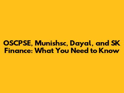 OSCPSE, Munishsc, Dayal, And SK Finance: What You Need To Know