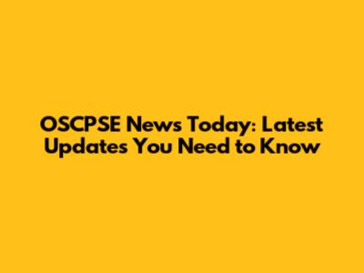 OSCPSE News Today: Latest Updates You Need To Know