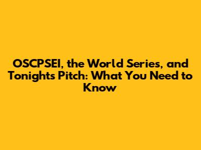 OSCPSEI & World Series: Tonight's Pitch & Schedule