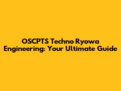OSCPTSC Techno Ryowa Engineering: Your Ultimate Guide