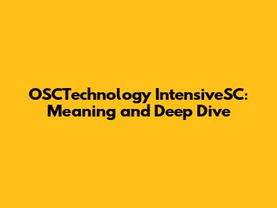 OSCTechnology IntensiveSC: Meaning And Deep Dive