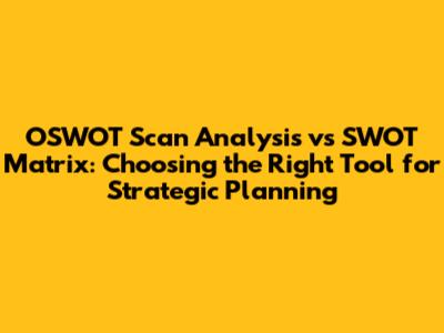 In conclusion, both the SWOT matrix and OSWOT scan analysis are valuable tools for strategic planning. The choice between them depends on the specific context, objectives, and dynamics of the business environment. SWOT is well-suited for stable environments with an internal focus, while OSWOT is more appropriate for dynamic environments with an external focus.