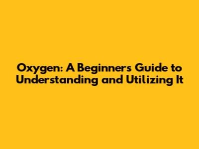 Oxygen: A Beginner's Guide To Understanding And Utilizing It