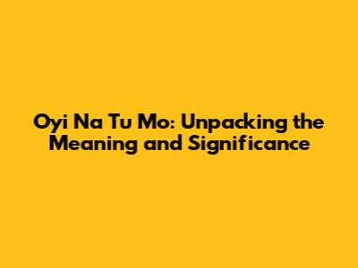 Oyi Na Tu Mo: Unpacking The Meaning And Significance