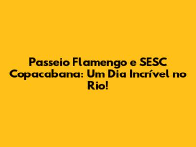 Com essas dicas, seu dia de passeio será uma experiência completa e sem imprevistos. Aproveite cada momento dessa combinação única de natureza, esporte e cultura que o Rio de Janeiro tem pra oferecer. Curtir o Aterro do Flamengo e o SESC Copacabana é viver um Rio autêntico e cheio de descobertas. Bom passeio, galera!