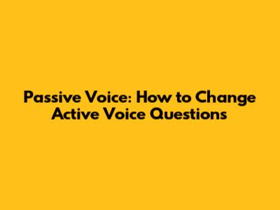 Passive Voice: How To Change Active Voice Questions