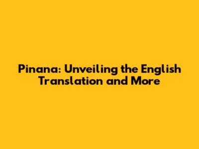 Pinana: Unveiling The English Translation And More