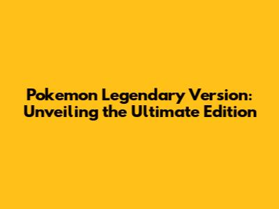Pokemon Legendary Version: Unveiling The Ultimate Edition