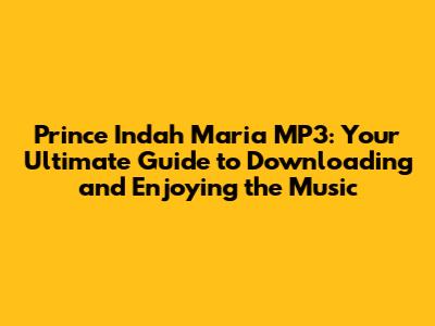 Prince Indah Maria MP3: Download, Listen, And Explore