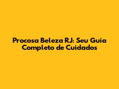Procosa Beleza RJ: Seu Guia Completo De Cuidados