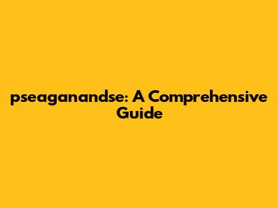 Pseaganandse: A Comprehensive Guide