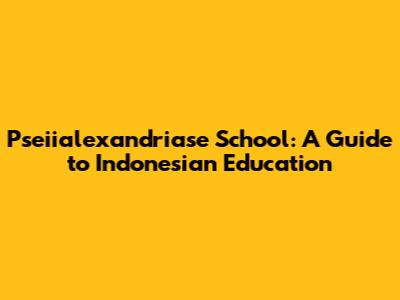 Pseiialexandriase School: A Guide To Indonesian Education