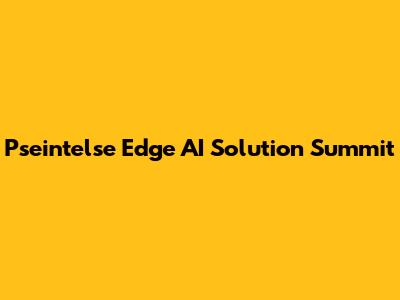Pseintelse Edge AI Solution Summit: All You Need To Know