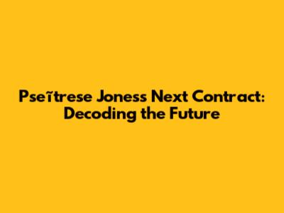 Pseĩtrese Jones's Next Contract: What To Expect?