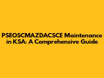 PSEOSCMAZDACSCE Maintenance In KSA: A Comprehensive Guide