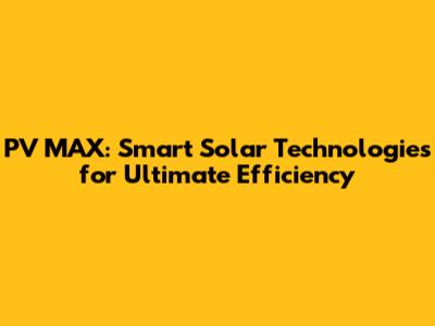 PV MAX: Smart Solar Technologies For Ultimate Efficiency